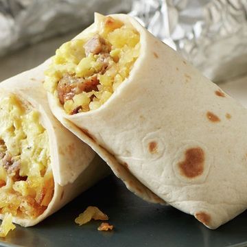 Flour tortilla filled with sausage, ham or bacon, farm fresh eggs and cheese.