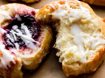 Bear claws, cinnamon rolls, cheese, and raspberry lemon.