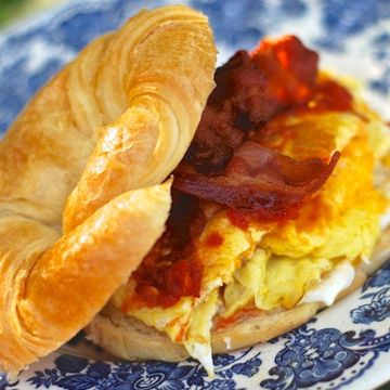 Big Breakfast Croissants filled with sausage, ham or bacon, farm fresh egg and choice of cheese.